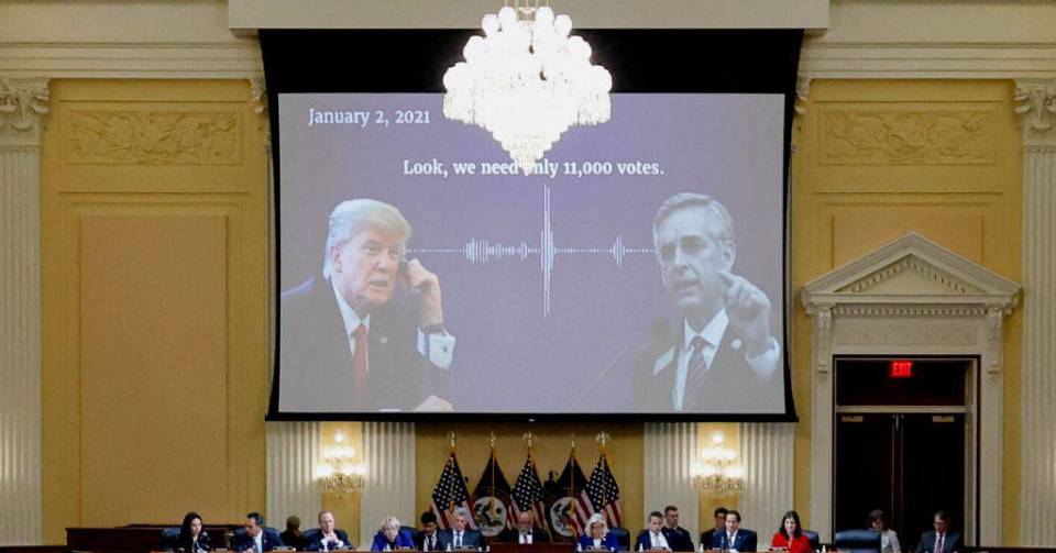 La comisión también reprodujo la grabación de una llamada de Trump a Brad Raffensperger, secretario de Estado de Georgia, en la que el expresidente dice que “necesita” unas 11,000 papeletas a su nombre, número suficiente para vencer a su rival Biden en este estado del sur.