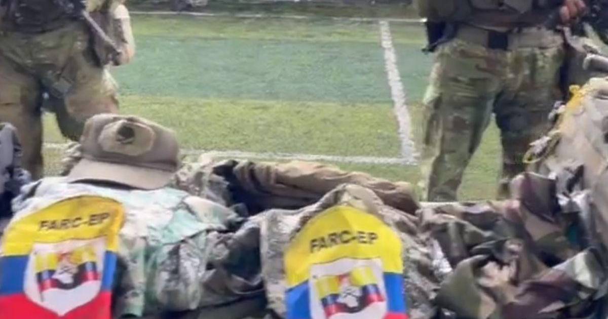 La institución anotó que en el sitio fueron encontradas armas de largo alcance, más de 1.200 balas, artefactos explosivos improvisados, vestimenta militar y parches con las siglas FARC EP, la guerrilla colombiana que firmó un acuerdo de paz con el gobierno de Colombia en 2016 y de la que quedaron disidencias.