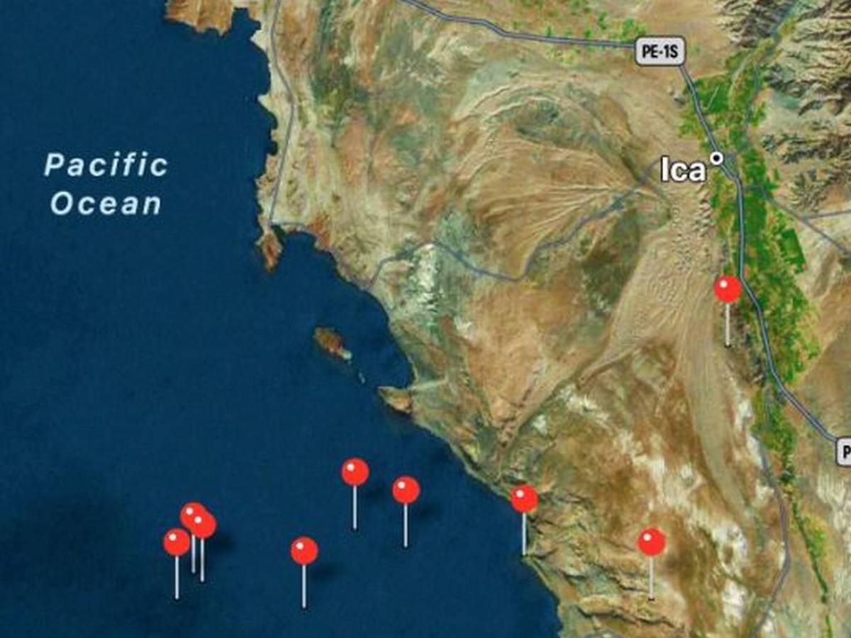 El mayor movimiento telúrico fue de 5,9 grados, registrado a las 15H22 locales (20H22 GMT), con epicentro en el Océano Pacífico a 26 km de profundidad, y a 111 km al suroeste de la ciudad de Ica, ubicada en la costa en la región homónima, a unos 400 km al sur de Lima, indicó el Centro.