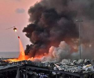 Dos horas después de la explosión, las llamas seguían vivas en la zona. Un helicóptero cargaba agua del mar para apagar los incendios.