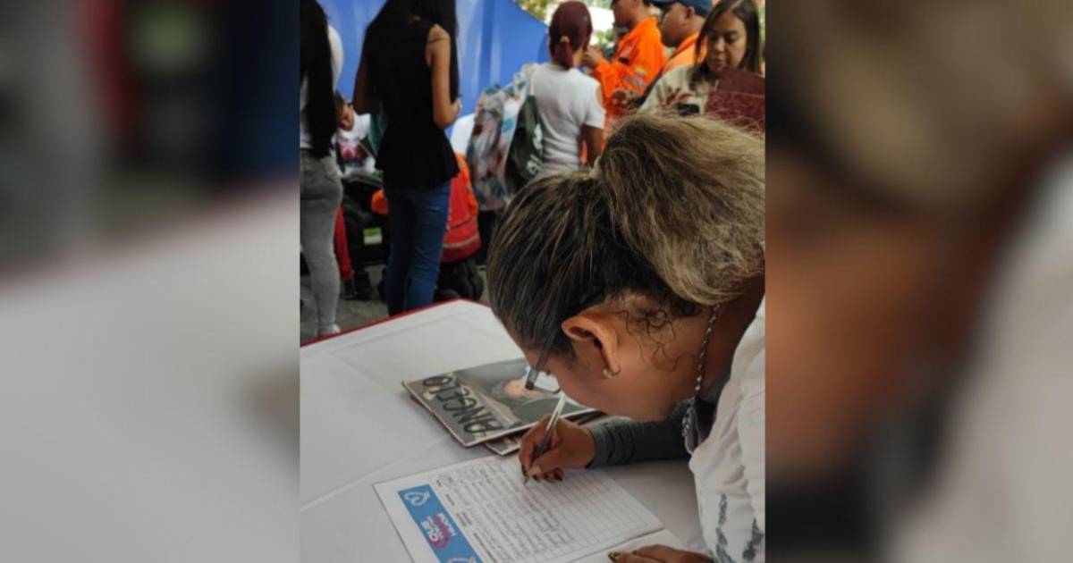 Caracas, Venezuela.-Centenares de venezolanos participaron este miércoles en una jornada de recolección de firmas en apoyo a sus migrantes, algunos de ellos detenidos en EE.UU., y rechazaron su deportación a El Salvador, donde fueron puestos en prisión bajo acusaciones de ser integrantes de la organización criminal Tren de Aragua.