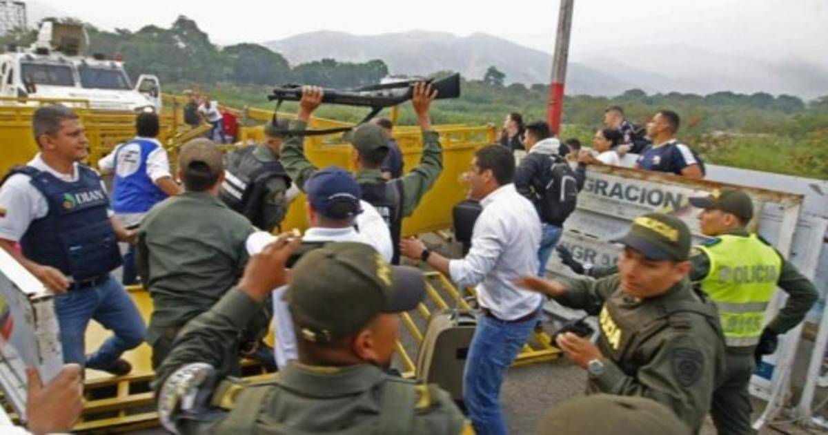 Tres de los militares se movilizaban en una tanqueta blanca y tumbaron una de las vallas de seguridad del puente Simón Bolívar, en la ciudad colombiana de Cúcuta, dijo un oficial de Migración Colombia.