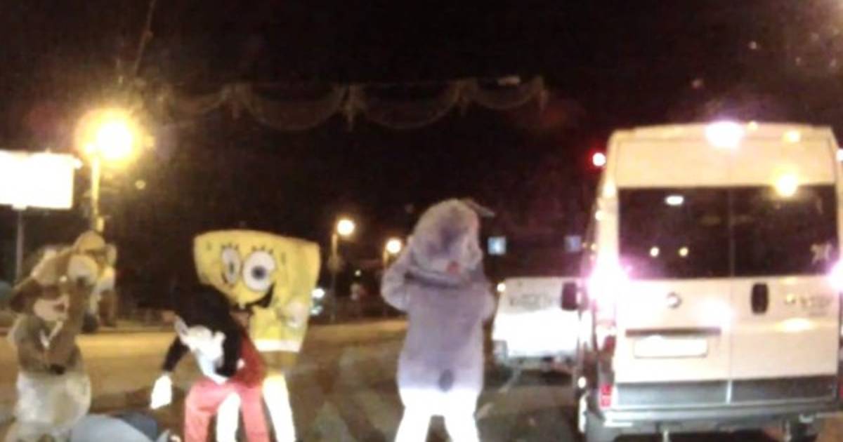 Un grupo de hombres disfrazados de Bob Esponja, Mickey Mouse y la ardilla de 'La Era de Hielo' son los protagonistas de un video que fue colgado en YouTube y que muestra cómo le propinan una paliza en plena vía al conductor de un automóvil en Rusia.