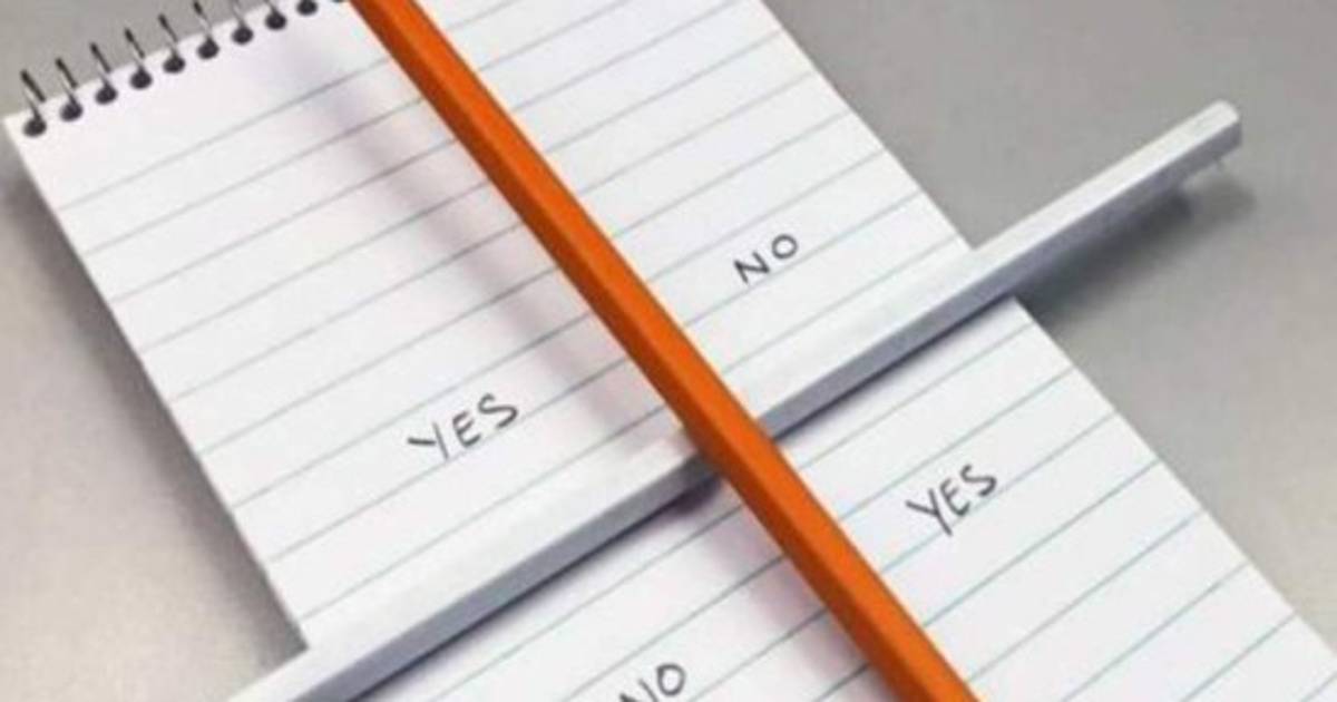 Las palabras 'SI' y 'NO' se escriben dentro de las cuatro secciones creadas por los lápices.