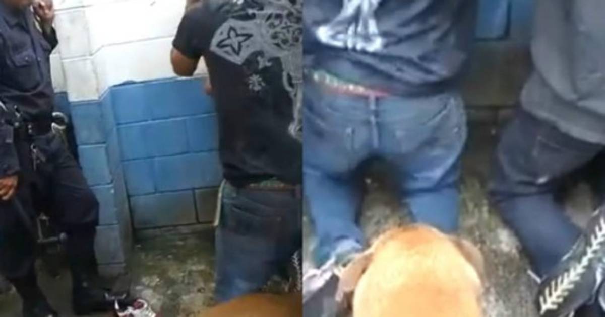 En el video se ve a dos muchachos hincados sobre una pared, mientras un perro que pertenece al ente de seguridad les muerde los talones, mientras otro de los uniformados le deja ir una descarga eléctrica a los detenidos en su cabeza.