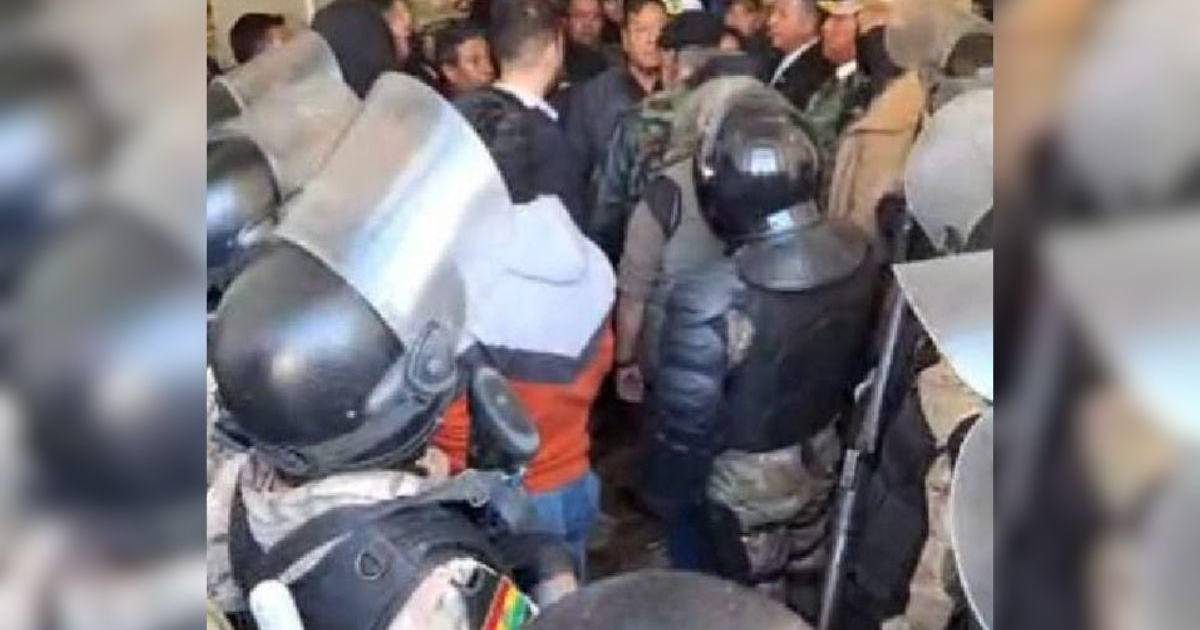 “Despliegue a todas estas fuerzas en este momento, es una orden general”, le exige Arce al general en medio de un mar de personas que estaban respaldándolo.