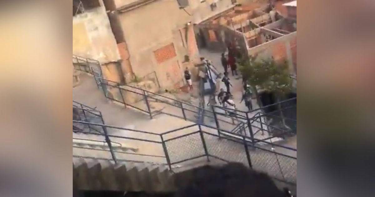 Y como en una escena de película, los agentes se deslizan por las gradas para poder llegar donde los sicarios que logran huir entre los pequeños pasadizos que hay en el lugar.