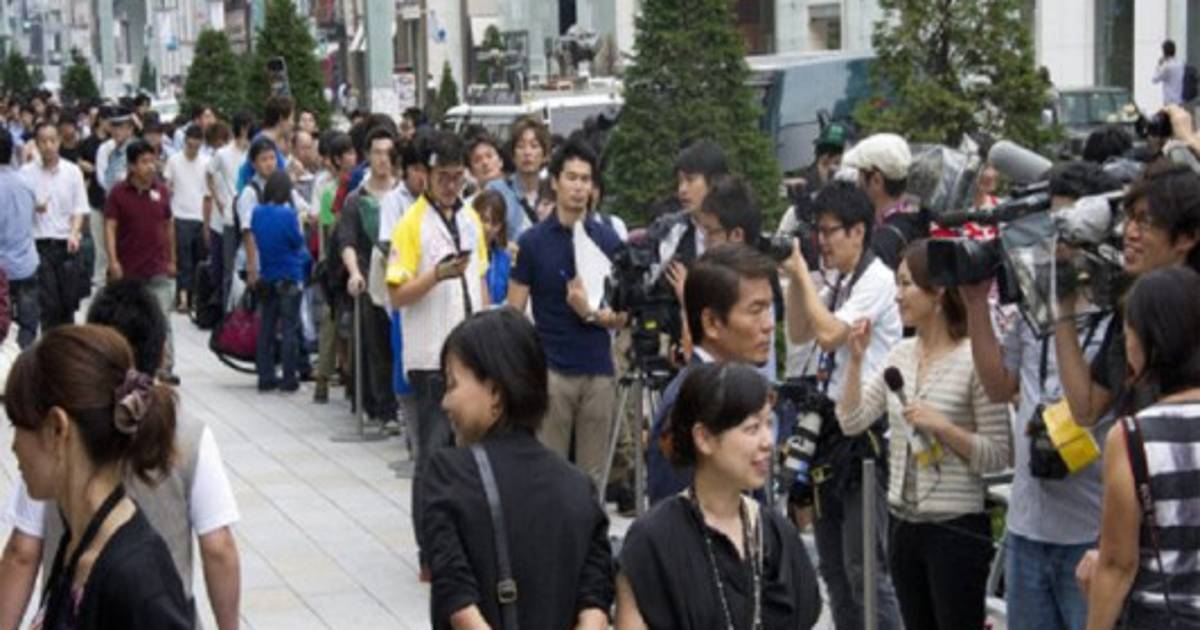 Apenas el presidente de Apple terminó de hacer el anuncio, una larga fila comenzó a formarse delante de la tienda Apple del distinguido barrio de Ginza, donde un empleado de 44 años manifestaba su orgullo de ser el primero.