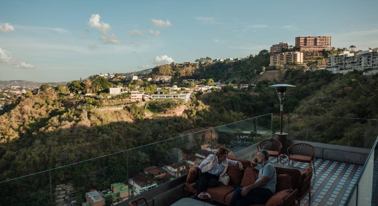 En el bar panorámico 360, en el corazón de Caracas, todas las mesas estaban ocupadas, a pesar de que para muchos las copas pueden costar más que varios meses de salario base.