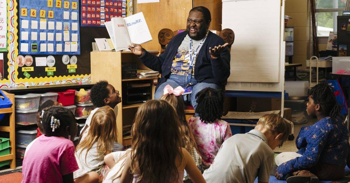 Dwayne Taylor, de 47 años, maestro de kínder en Frontenac, Kansas, se sintió atraído por el trabajo en parte porque fue criado por una madre soltera, sin modelos masculinos a seguir. “Quería ser eso para los futuros estudiantes”, dijo.