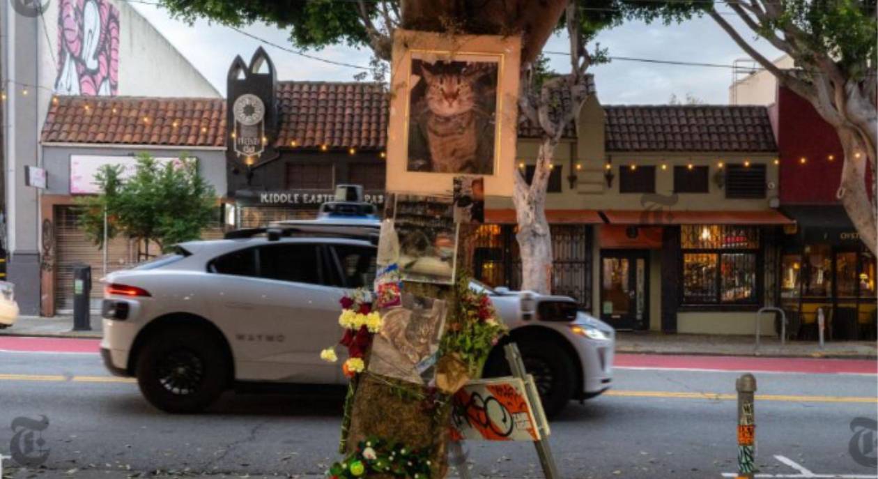 Cientos de animales mueren cada año atropellados por conductores en la Ciudad. Pero la muerte de un gato, aplastado por la rueda trasera de un taxi autónomo Waymo, ha enfurecido a algunos residentes del barrio Mission que amaban a Kit Kat —y provocado consternación entre quienes resienten la creciente automatización en la sociedad.