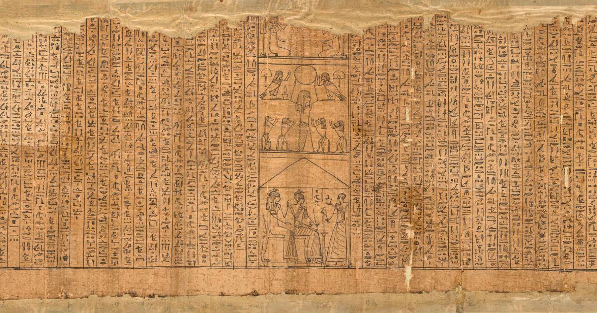 Un trozo del Papiro de Pasherashakhet, parte de varios pergaminos funerarios del antiguo Egipto hoy exhibidos.