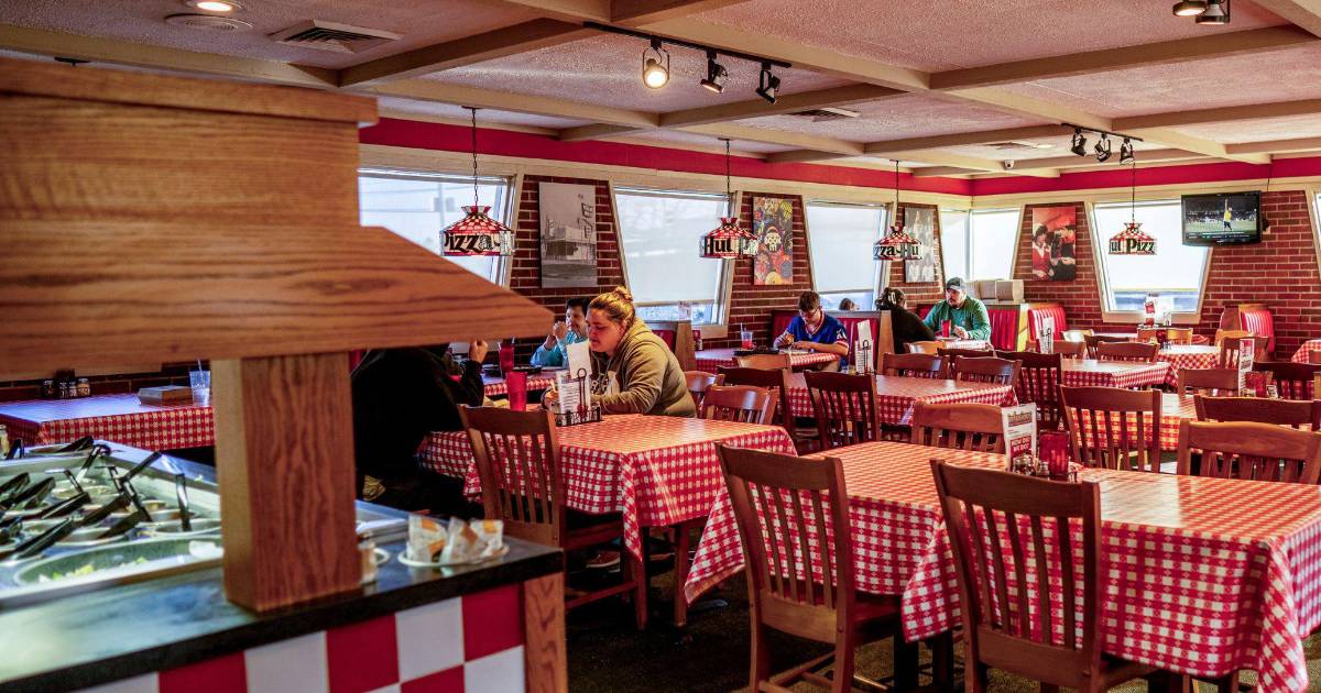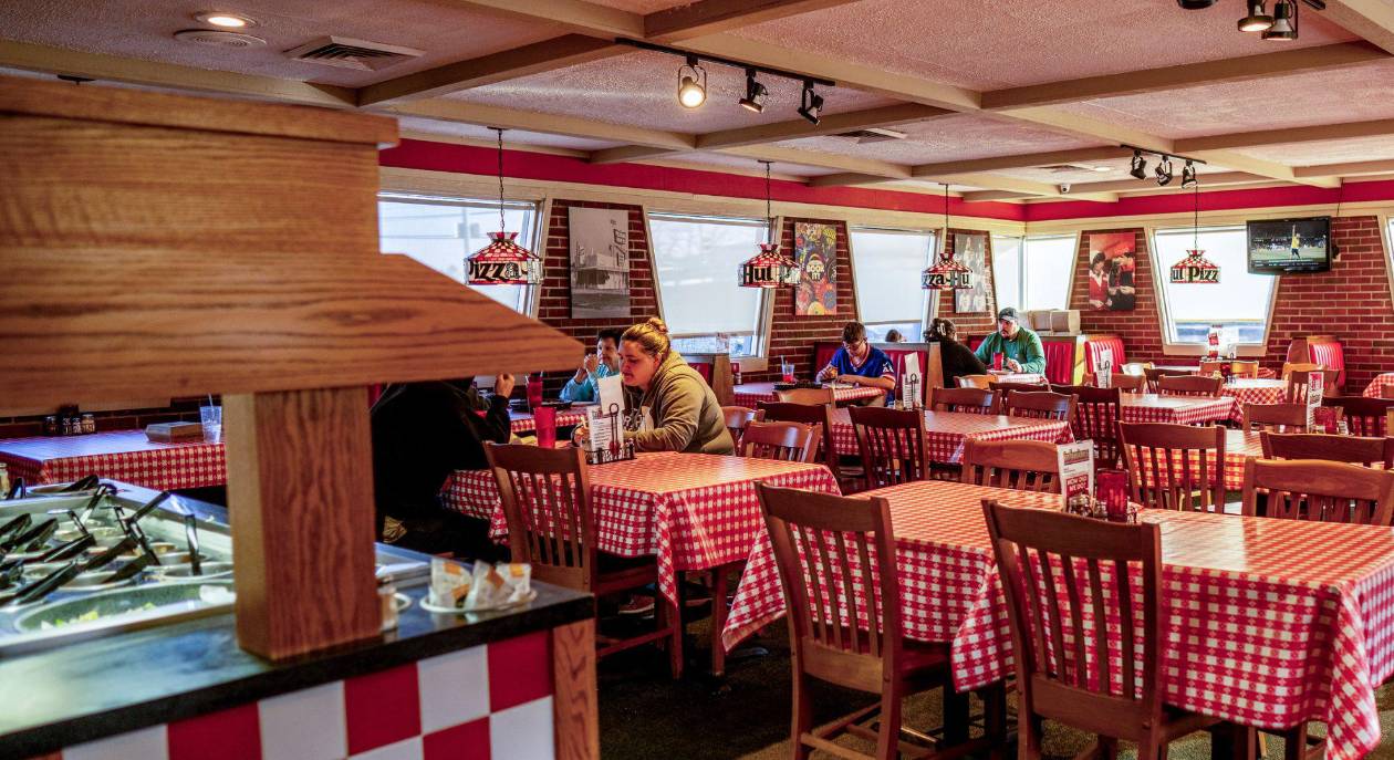 No era que hubiera descubierto una reliquia abandonada de la era Reagan. Como explicaba una placa junto a la puerta, este restaurante de Tunkhannock, Pensilvania, era un Pizza Hut Classic. El diseño interior y el menú se habían diseñado minuciosamente para reproducir los Pizza Hut de las décadas de 1980 y 1990 cuando las familias y los amigos se acomodaban en cabinas de vinilo rojo los viernes por la noche para comer pizza hechas en sartén y beber Pepsi en vasos rojos de plástico.