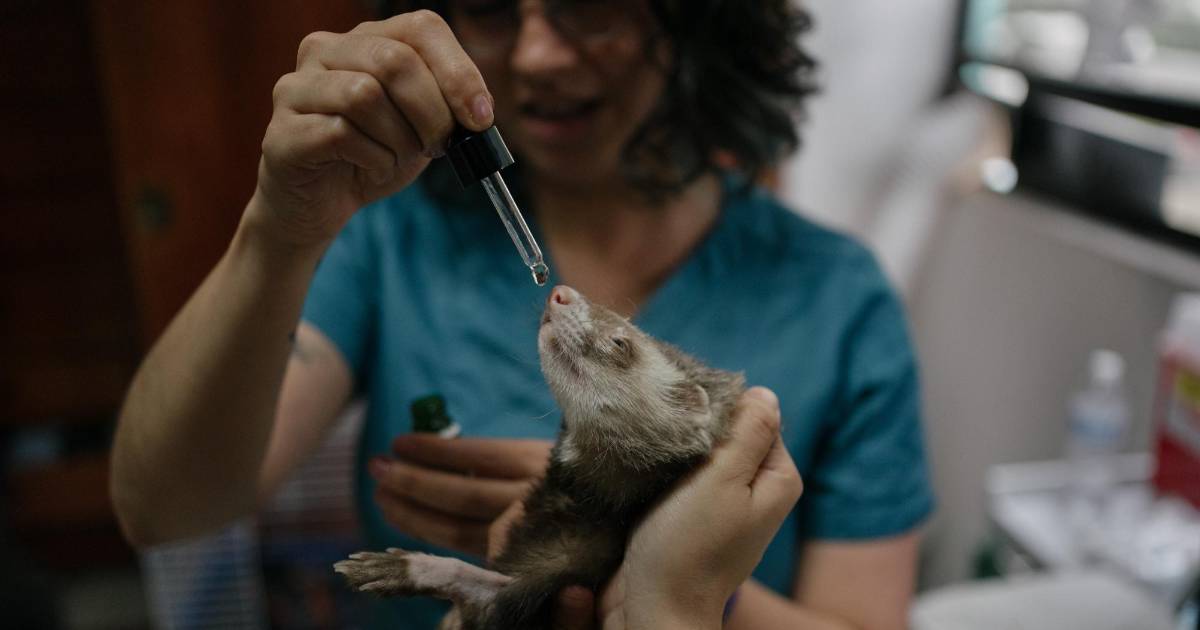 Fenri, un hurón que sufre una enfermedad inflamatoria intestinal, recibe CBD en la Ciudad de México. (Luis Antonio Rojas para The New York Times)