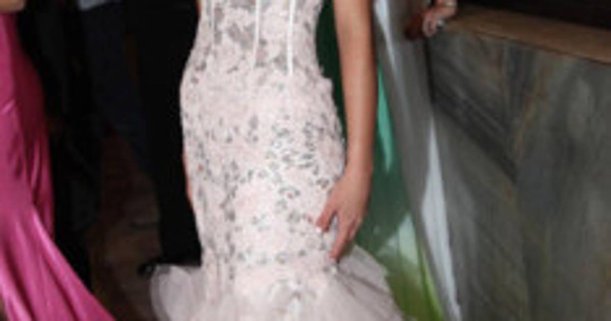 <div id='DTElementID-1605945' class='WebText'>Daniela Cruz seleccion&oacute; un vestido strapless en tono rosa con escote en forma de coraz&oacute;n y aplicaciones florales de encaje y brillo plateado y en la parte inferior un dise&ntilde;o corte de sirena con ruffles de tul.<br /><br /></div>