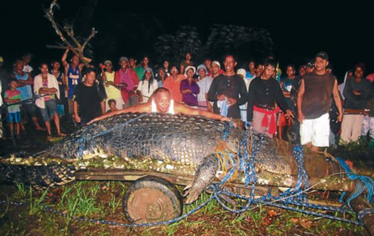 Uno de los ejemplares más grandes que permanecen en cautiverio es Lolong, un cocodrilo que fue capturado en el pantano de Agusan, en la isla de Mindanao, en el sur de Filipinas. Este cocodrilo mide 6.17 metros y se calcula que pesa 1,075 kilos. Más de 100 personas fueron necesarias para capturar y sacar del agua a este espécimen en una caza que se prolongó tres semanas.