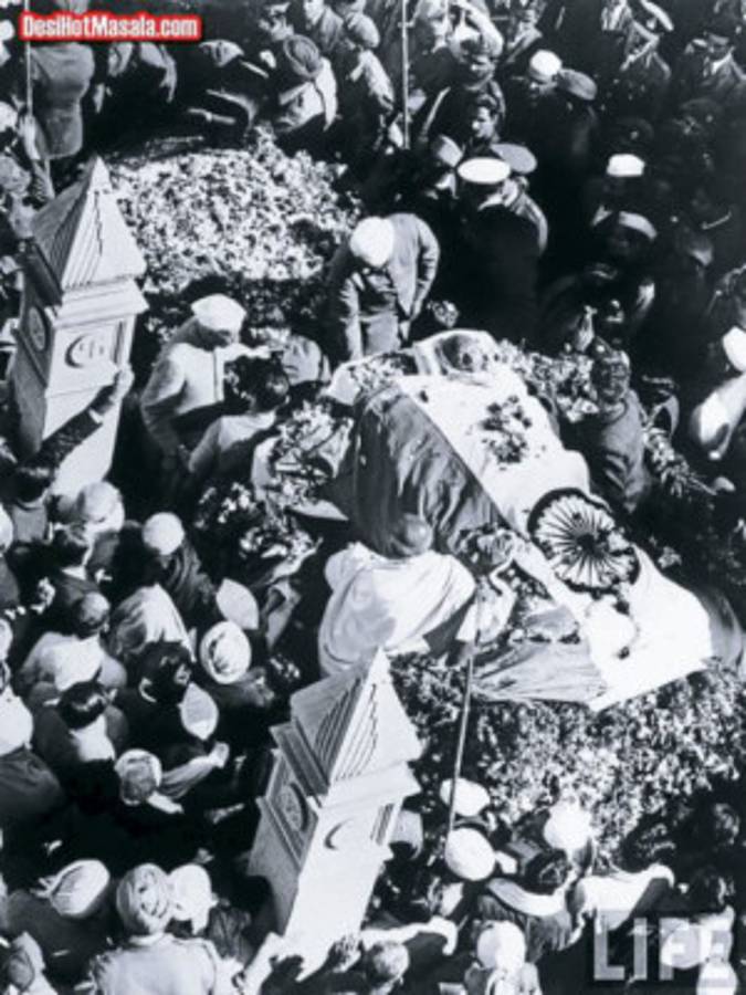 SU MUERTE. El 30 de enero de 1948, cuando Gandhi se dirigía a una reunión para rezar, fue asesinado en Birla Bhavan (Birla House) en Nueva Delhi, a los 78 años de edad, por Nathuram Godse, un radical hindú aparentemente relacionado con grupos ultraderechistas de la India, como era el partido hindú Hahasabha, quienes le acusaban de debilitar al nuevo gobierno con su insistencia en que le fuera pagado a Pakistán el dinero prometido.