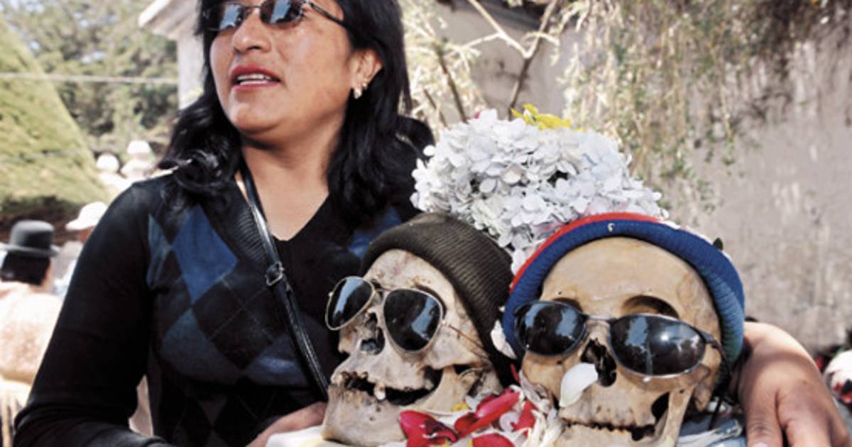 Engalanados con flores, guirnaldas, sombreros, gorros de lana e incluso gafas de sol, cráneos humanos son sacados de las casas y trasladados al cementerio para ser bendecidos, una tradición que cada noviembre repiten cientos de bolivianos para agradecer los favores recibidos.