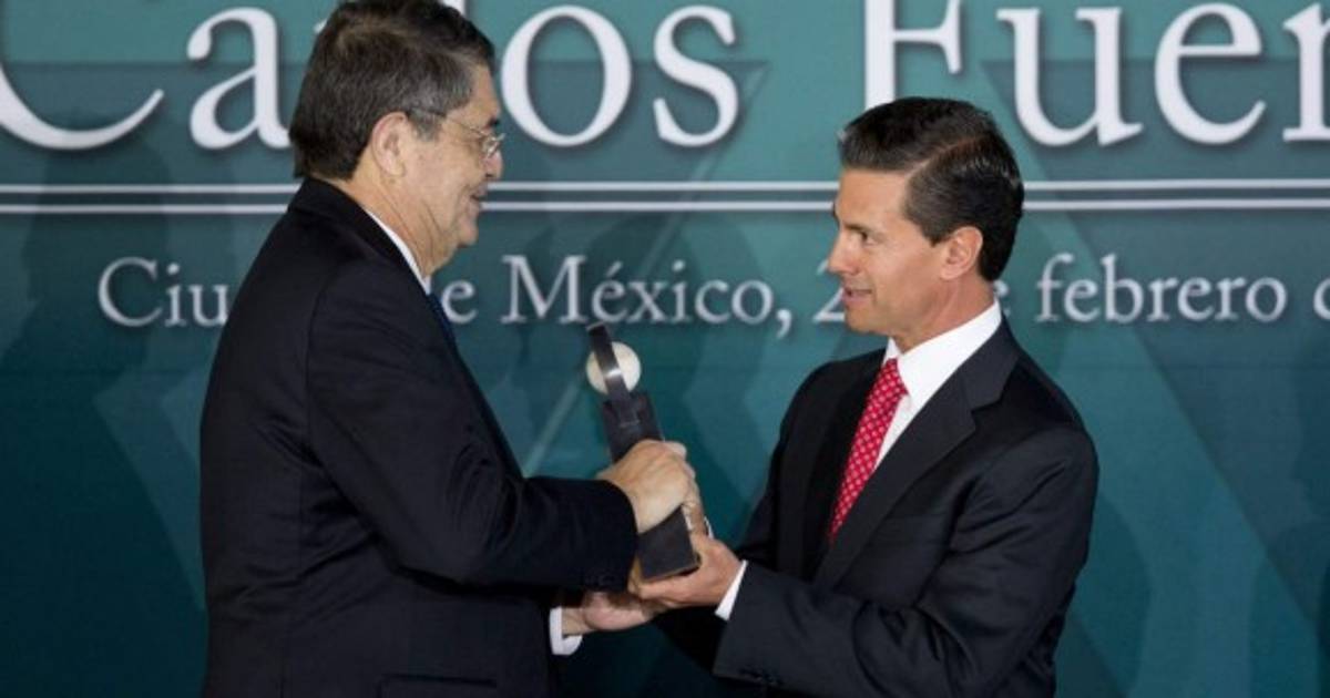 En 2015 cuando recibió el premio Carlos Fuentes de manos del presidente de México, Enrique Peña Nieto.