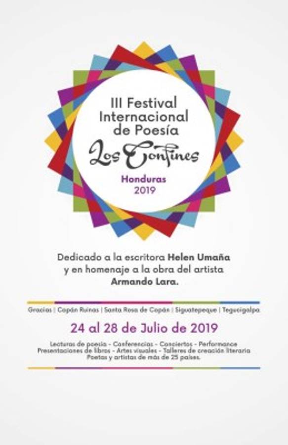 TEGUCIGALPA, HONDURAS.- El tercer Festival Internacional de Poesía Los Confines (FIPLC) se desarrollará del 24 al 30 de julio de 2019 en las ciudades de Gracias, Copán Ruinas, Santa Rosa de Copán, Siguatepeque y Tegucigalpa, con la participación de poetas y artistas de más de veinticinco países que desarrollarán una agenda cultural abierta a todo el público y totalmente gratuita.