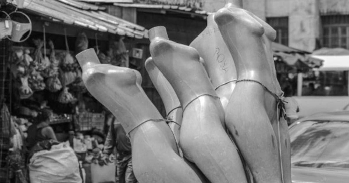 Nos muestra el universo de mercancías, masa de objetos donde las personas son como fantasmas vivientes, como si fueran objetos entre montañas de productos. En ese sentido, la foto de los maniquí que moldean cuerpos de mujeres es bastante reveladora porque construyen la metáfora del cuerpo como accesorio. El mercado es tránsito de identidades, de energías reveladoras, pero a su vez, es un templo de cosificación.