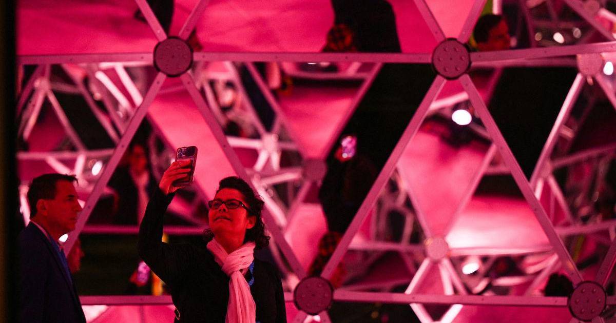 A diferencia de lo que ocurrió en Alemania, donde se estrenó en un parque a cielo abierto, esta reapertura tiene lugar en un enorme galpón en el centro de Los Ángeles. Con fondos oscuros, la exhibición gana un efecto psicodélico y aires de museo.