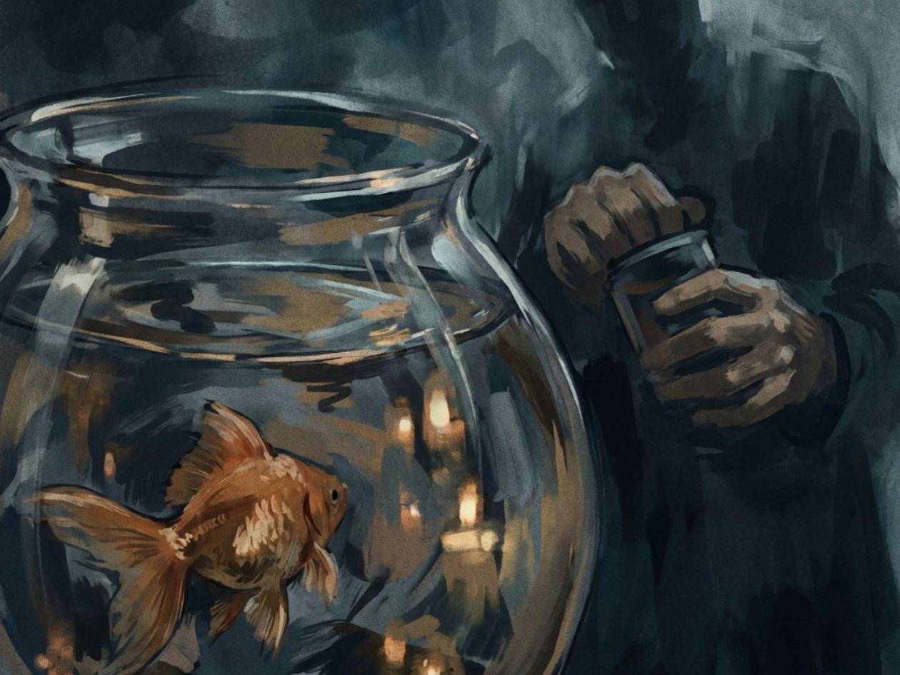 Luis buscó con su mano el interruptor de la luz al llegar a su cuarto. Luego de encontrarlo, encendió el ventilador. Se quitó los zapatos y tiró la mochila al suelo. Ansioso, tomó el frasco de alimento y lo llevó hasta la pecera, depositó tres bolitas oscuras y esperó mientras observaba preocupado, ya que su pececito dorado ignoraba su comida desde hacía dos días.