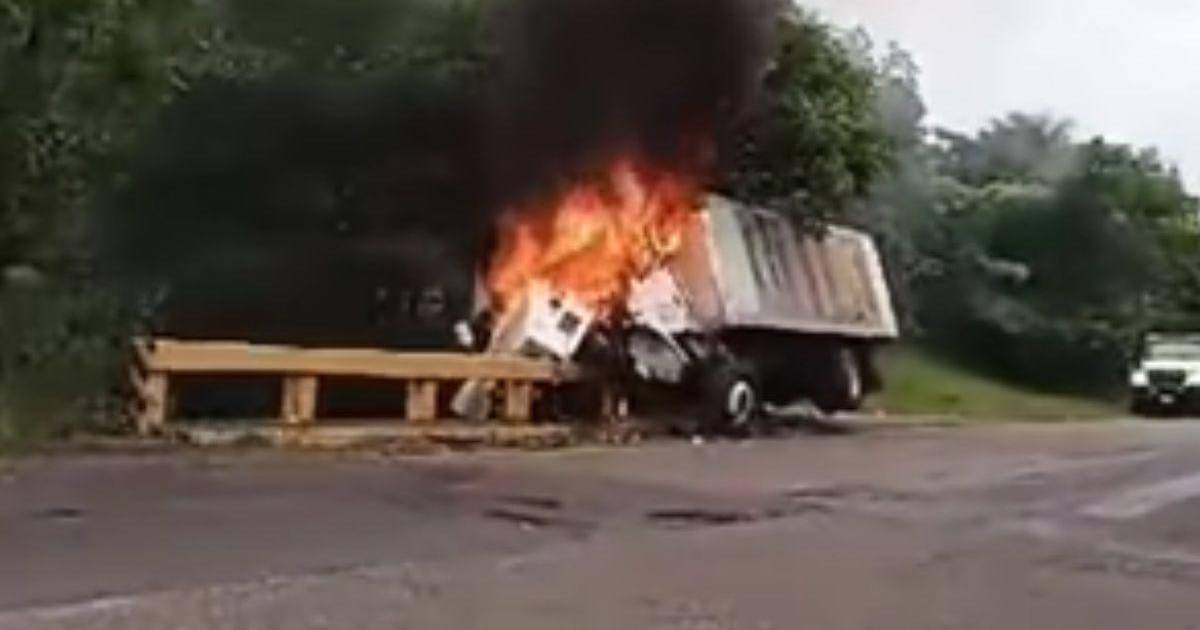 FRANCISCO MORAZÁN, HONDURAS.- Un brutal accidente vial se reportó a tempranas horas de la mañana de hoy (16 de junio) en el Valle de Zamorano, municipio de San Antonio de Oriente, Francisco Morazán en Honduras, cuando un vehículo tipo camión colisionó violentamente con un puente, provocando que el automóvil se incendiara rápidamente, consumiendo por completo su carrocería.