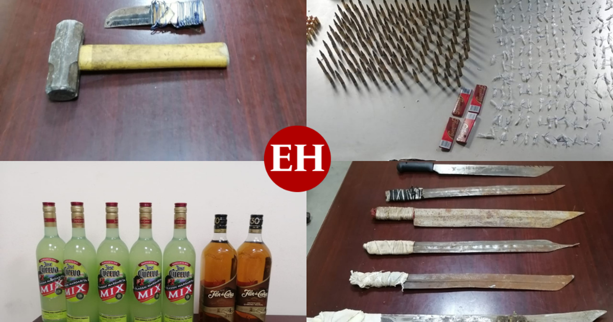 EL PORVENIR, HONDURAS.-Un arsenal y varias botellas de alcohol fueron halladas dentro de las celdas del centro penal de Siria, en El Porvenir, Francisco Morazán.