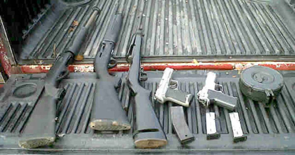 Las autoridades decomisaron en la casa dos escopetas, una carabina 30-30, dos pistolas automáticas, así como un cargador para fusil de asalto AK-47 con capacidad de almacenaje de cien proyectiles.