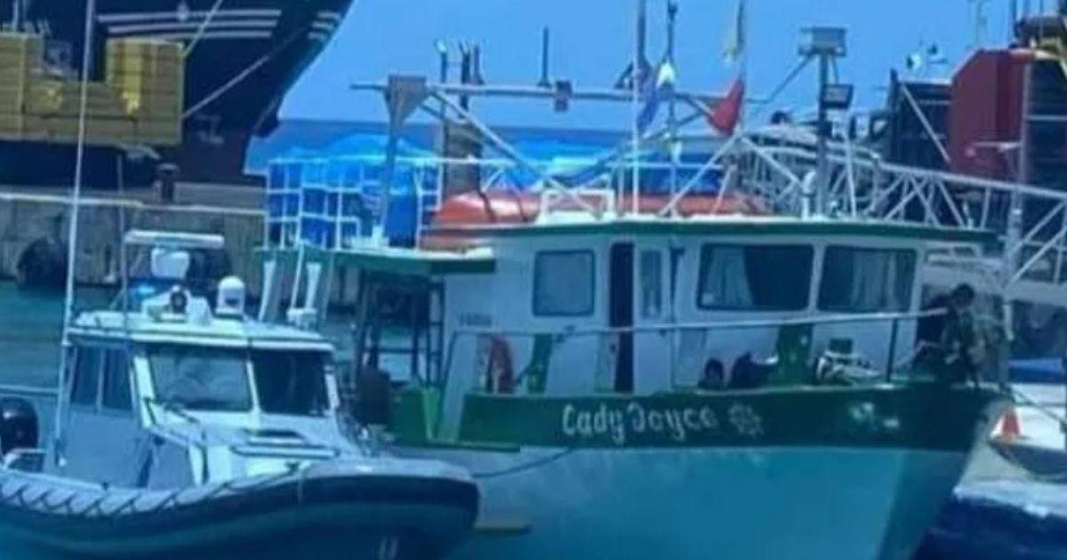 Una fotografía refleja el momento cuando detienen al barco de color blanco con detalles verdes llamado “Lady Joyce”.