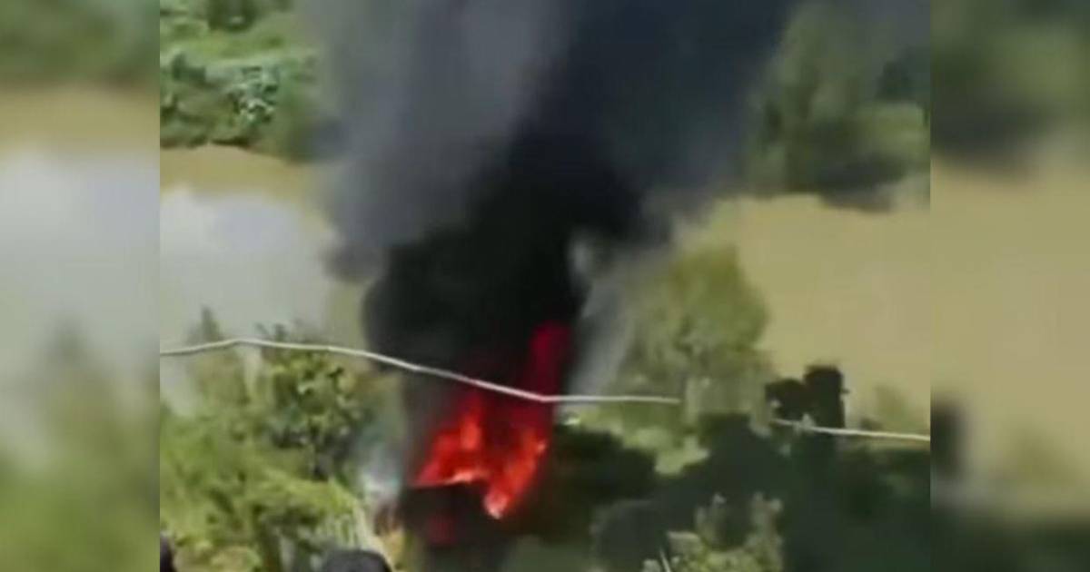 El vehículo quedó a pocos metros del río Chamelecón, por lo que las personas en el lugar ayudaron a sofocar las llamas de la unidad.