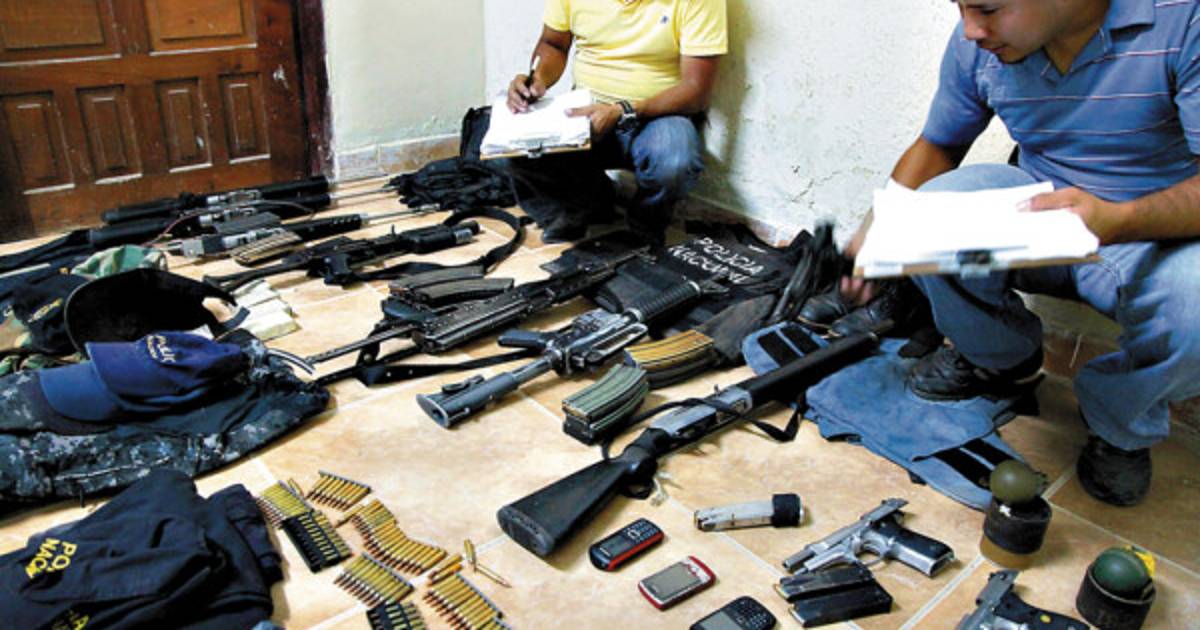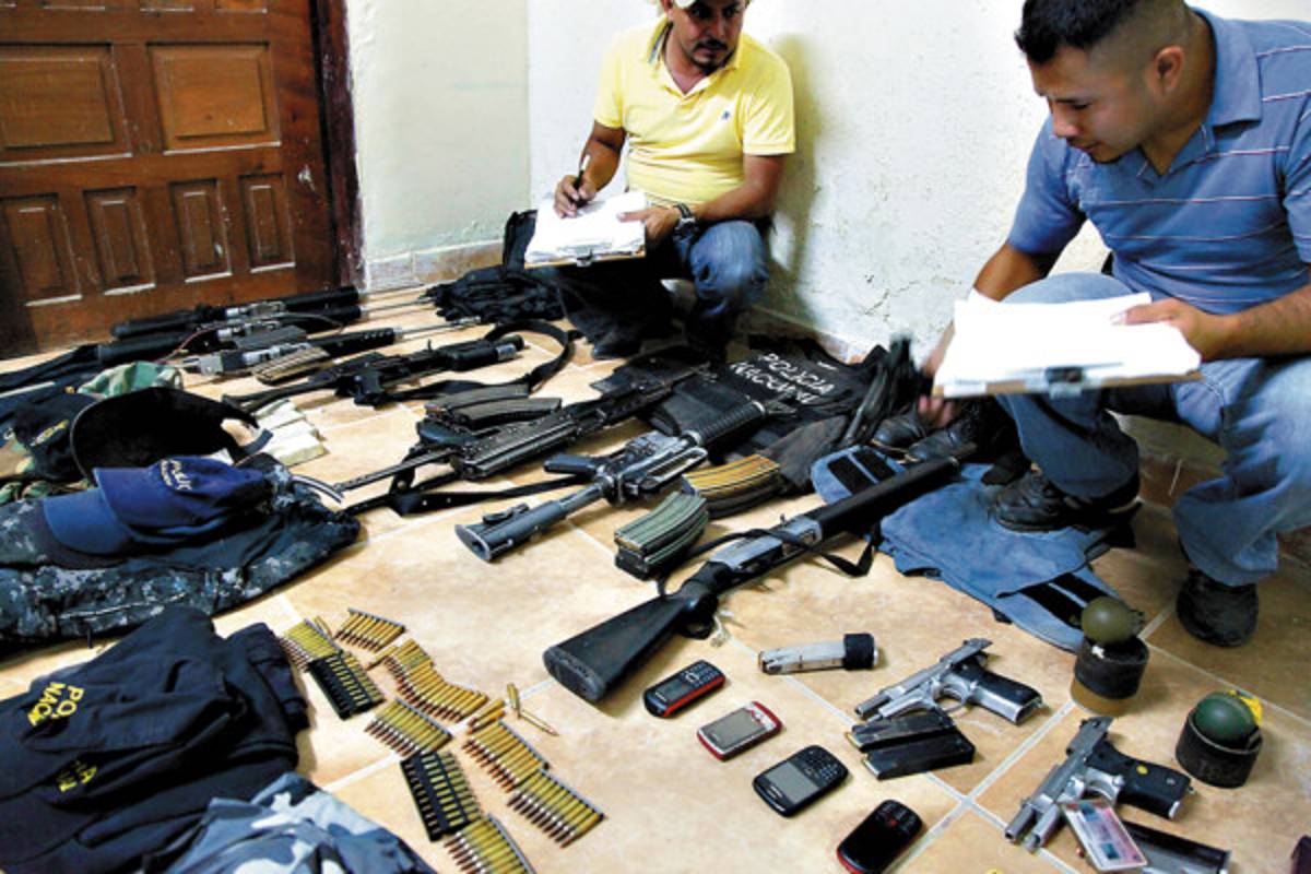 Los agentes decomisaron un arsenal que incluye tres fusiles calibre 323, un fusil Galil de la Policía, una AK-47, un fusil A-15, una escopeta calibre 12 sin serie y cuatro pistolas calibre nueve milímetros.