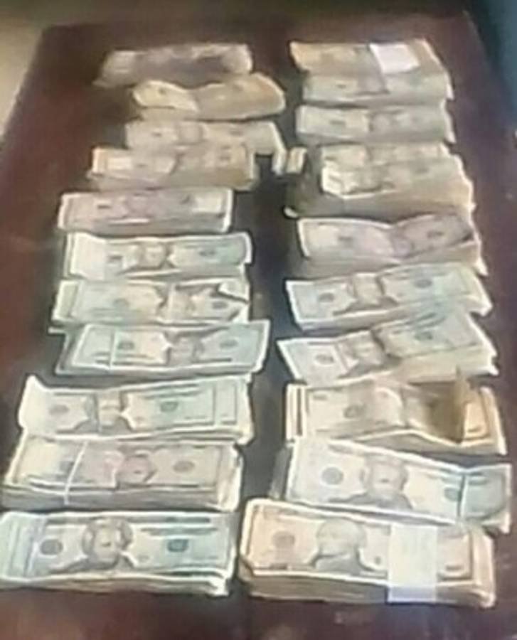 Tras un registro a su automóvil se encontró debajo del asiento del pasajero una bolsa blanca con la suma de 21,810 mil dólares en billetes de diferentes denominaciones.