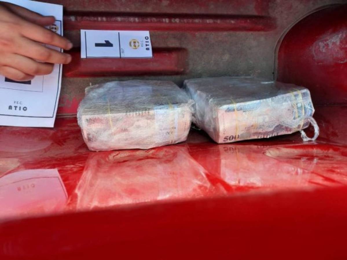 En la inspección por parte de Técnicos en Procesamiento de la Escena del Crimen de la ATIC, se encontró varios paquetes de dinero envueltos en plástico, mismos que serán trasladados hasta la capital para su conteo junto a la persona detenida.
