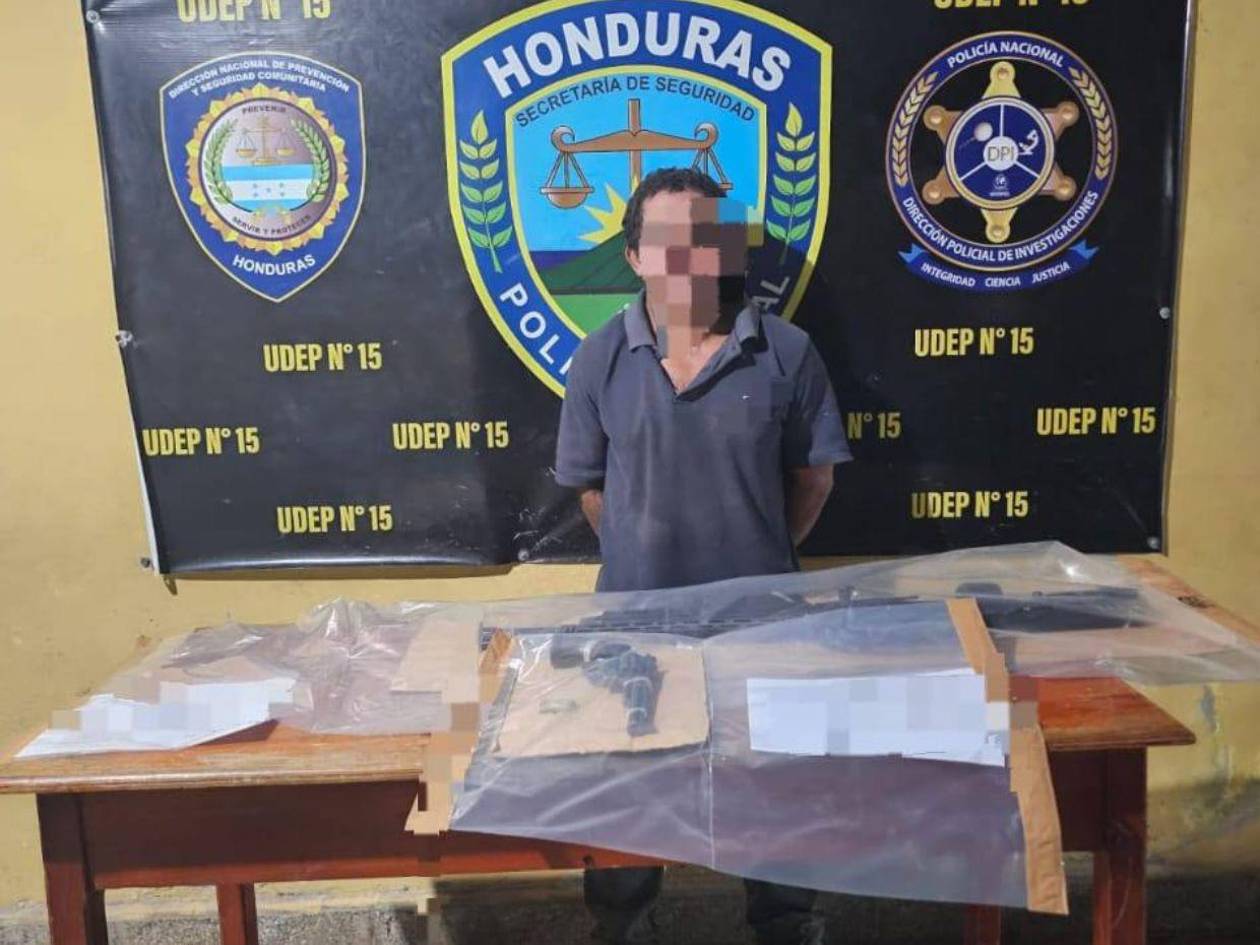 Juticalpa, Honduras.– Un hombre fue capturado en la aldea Limones, municipio de Juticalpa, señalado como presunto responsable de un homicidio, una tentativa de homicidio y el porte ilegal de armas de fuego, hechos violentos ocurridos en el sector rural del departamento de Olancho.