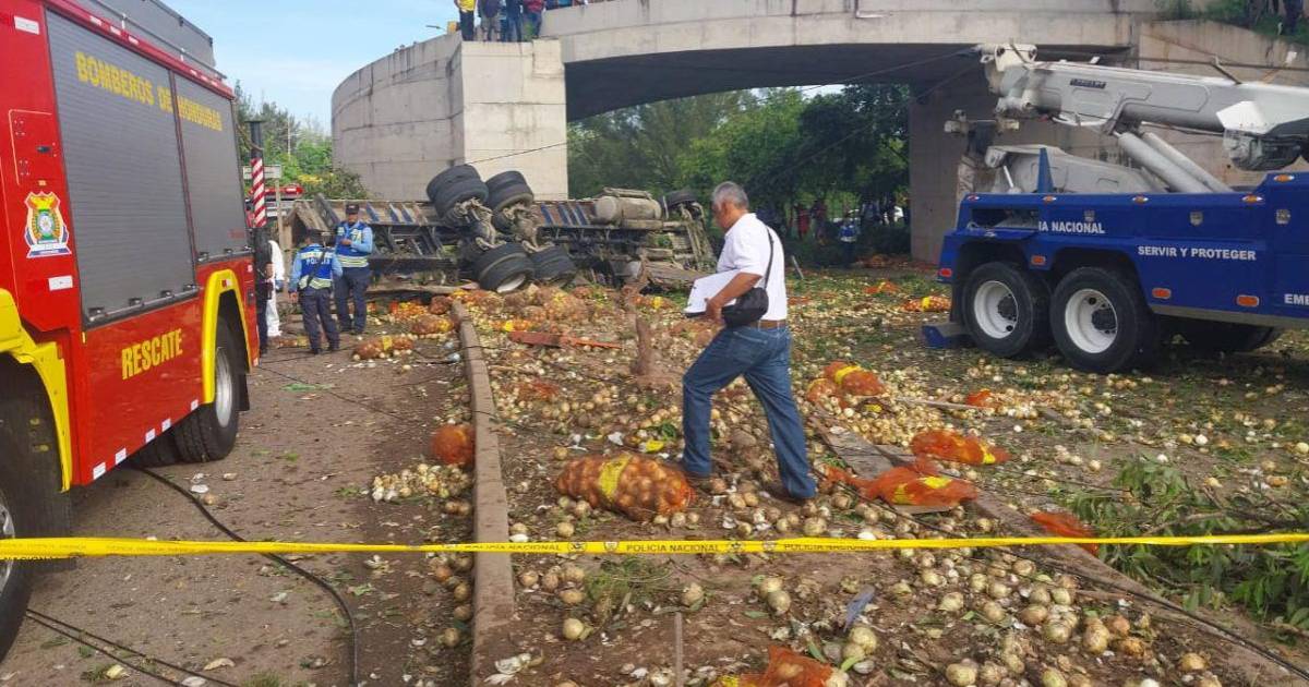 Reportes preliminares indican que el chofer sufrió una falla en el sistema de frenos y perdió el control del pesado camión que viajaba cargado de cebollas desde el oriente del país hacia la capital.
