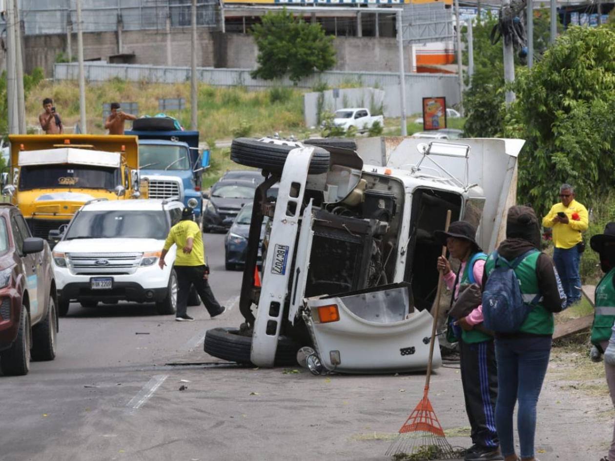 El automotor de trabajo terminó volcado a un lado del carril que conduce del sector de La Cañada con rumbo a la Fuerza Aérea Honduras (FAH), luego de impactar contra la mediana. Por fortuna no impactó con ningún otro automotor.
