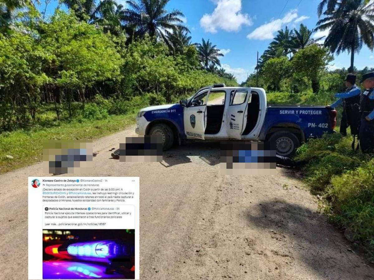”¡Declaro estado de excepción en Colón a partir de las 9:00 pm! A @SSEGURIDADHN y @PoliciaHonduras, les instruyo restringir circulación y fronteras de Colón, estableciendo retenes en todo el país hasta capturar a despiadados criminales”, ordenó la mandataria desde sus redes sociales.