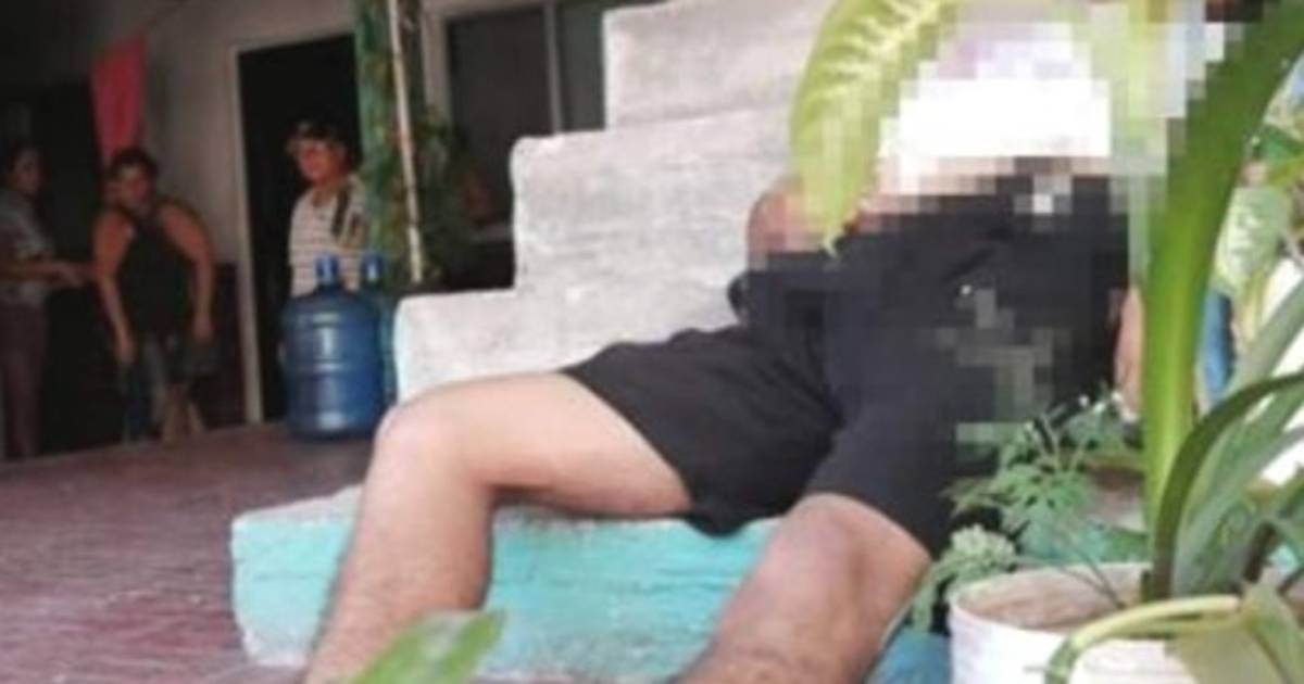 En las imágenes facilitadas por la Policia Nacional se observa al hombre, quien vestía una camiseta blanca, calzoneta y chancletas, tirado sobre unas gradas.