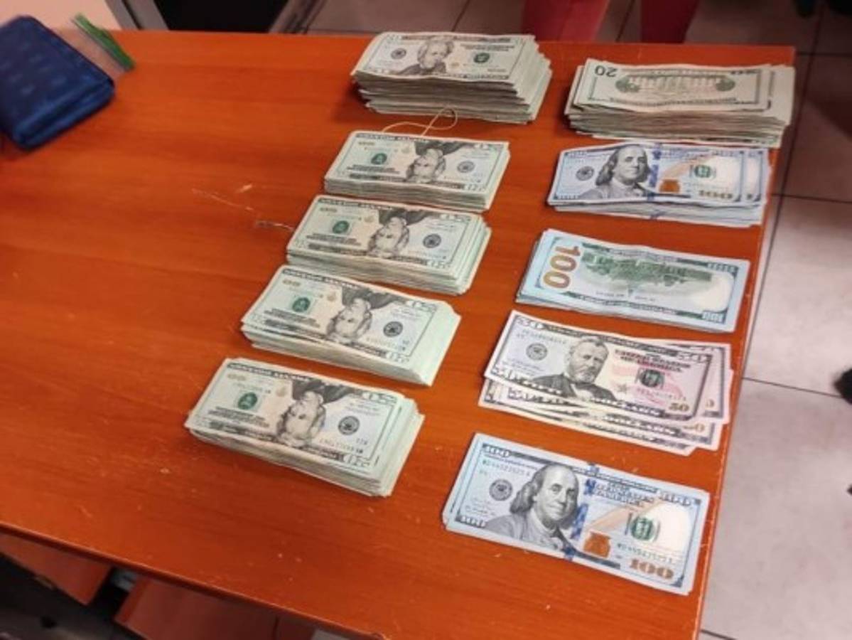 Juan Sabillón, portavoz de la Policía Nacional en la zona norte, informó que la Dirección Nacional de Servicios Policiales Fronterizos (DNSPF) logró detectar la suma de dinero sin declarar que permanecía oculta al interior de una maleta, propiedad de uno de los involucrados.