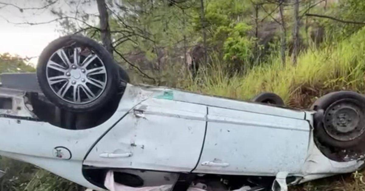 El incidente involucró un automóvil tipo turismo de color blanco, que se precipitó hacia un abismo y quedó volcado con las llantas hacia arriba.