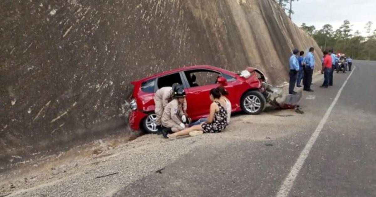 El vehículo sedan se salió de la carretera cuando transitaban a al altura de Yamarangüila, Intibucá, provocando que el carro se estrellara contra un paredón de frente y luego de costado.