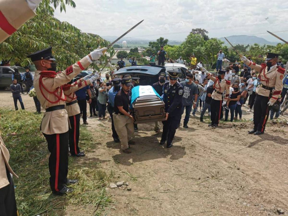 SAN PEDRO SULA, HONDURAS.- Despedido como héroe en un acto solemne fue enterrado este martes -26 de julio- el oficial Clase II Daner Johan Rivas López, quien formaba parte de la Dirección Policial Anti Maras y Pandillas Contra el Crimen Organizado (DIPAMPCO).