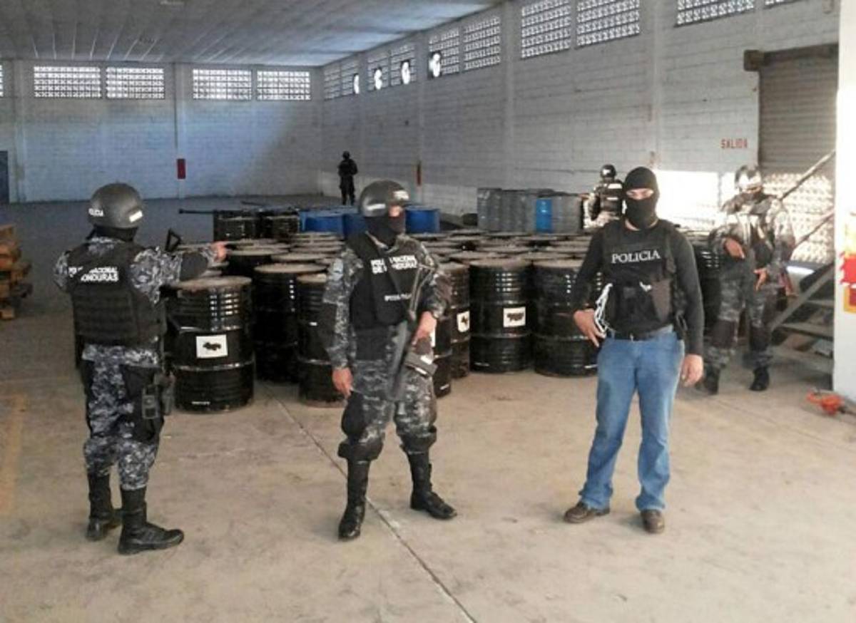 Al menos 100 barriles que contendrían precursores químicos para la elaboración de cocaína, fueron decomisados este jueves en un operativo conjunto efectuado en la colonia Buenos Aires de San Pedro Sula, Cortés, en la zona norte de Honduras.