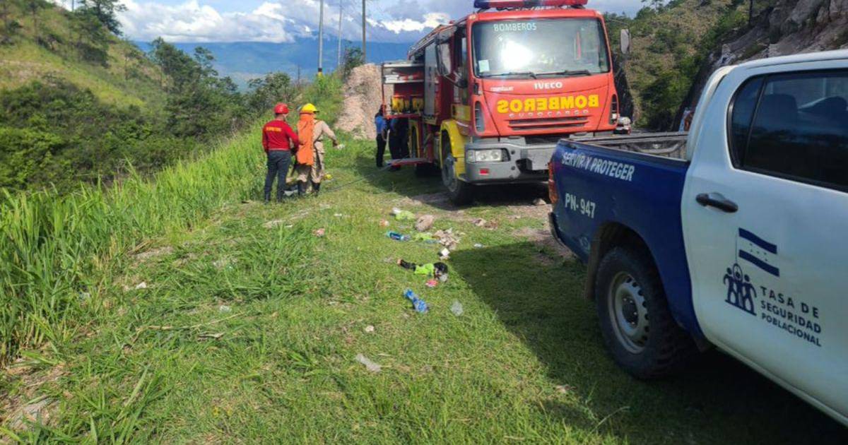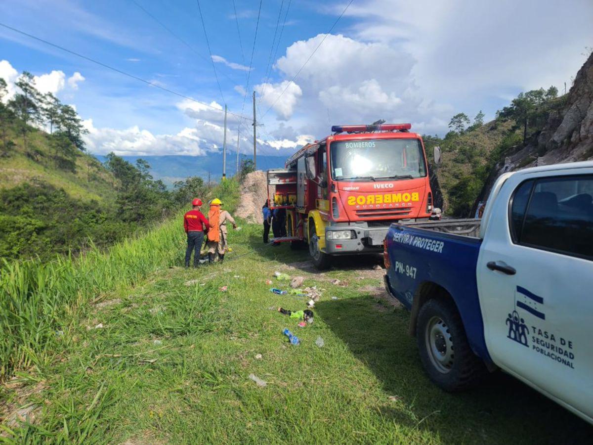 Una unidad del Cuerpo de Bomberos fue solicitada por el Ministerio Público para realizar el rescate del cadáver que estaba varios metros abajo en la hondonada.