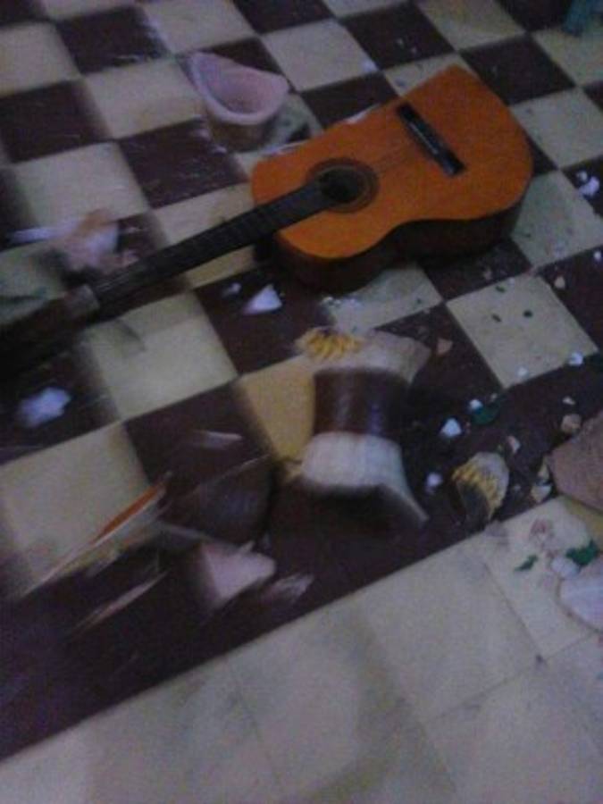 Lleno de una inexplicable furia el hombre comenzó a quebrar algunos santos, bancas, floreros sillas e instrumentos musicales al servicio del templo.
