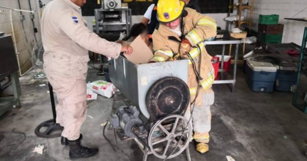 SAN PEDRO SULA, HONDURAS.- Un hombre quedó atrapado este jueves en una máquina productora de tortillas, en un extraño incidente en San Pedro Sula, al norte de Honduras.