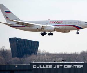 Este avión ruso llegó el pasado 31 de diciembre del 2016 a Virginia, en las afueras de Washington, a traer a los 35 diplomáticos expulsados por Barack Obama por una supuesta injerencia. Foto AFP. 1 Diplomáticos rusos salen de EE UU este domingo