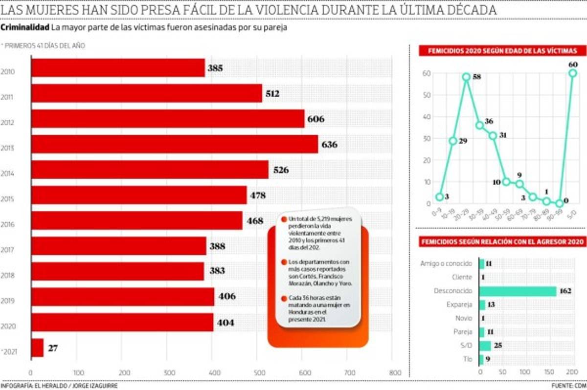 Un total de 5,219 mujeres perdieron la vida violentamente entre 2010 y los primeros 41 días del 2021, de acuerdo con el registro oficial del Observatorio de la Violencia de la Universidad Nacional Autónoma de Honduras.